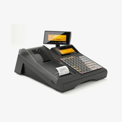 Kasa fiskalna NOVITUS NEXT PRO ONLINE wersja BUS GSM24 - widok z góry pod kątem z otwartą pokrywą na papier termiczny