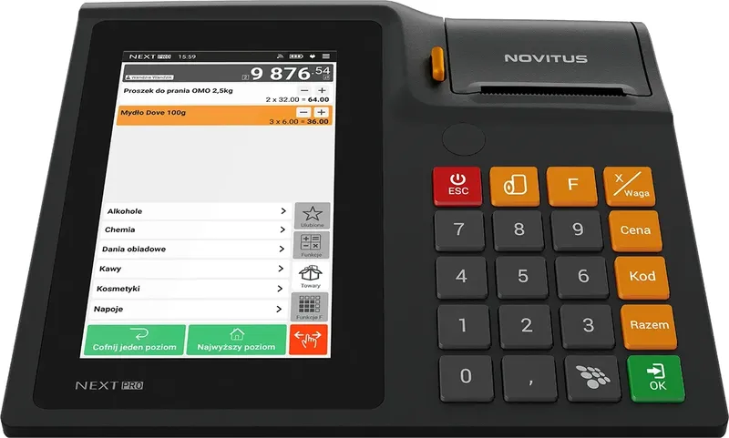 Solidna klawiatura fizyczna ma duże, nieścieralne klawisze i przyjemnie, miękko pracuje. Wielu kasjerów lubi z niej korzystać, mimo, że wszystko da się zrobić na ekranie dotykowym.